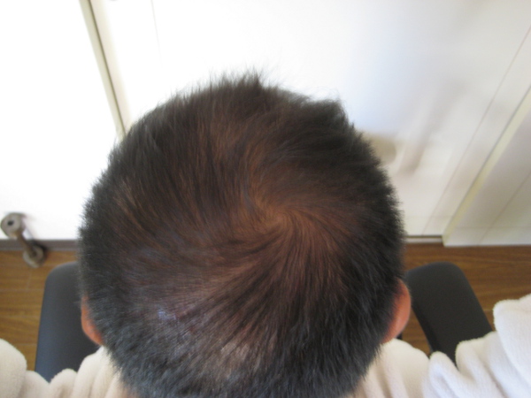 つむじ周辺から、後ろまで薄毛地帯が広がる。